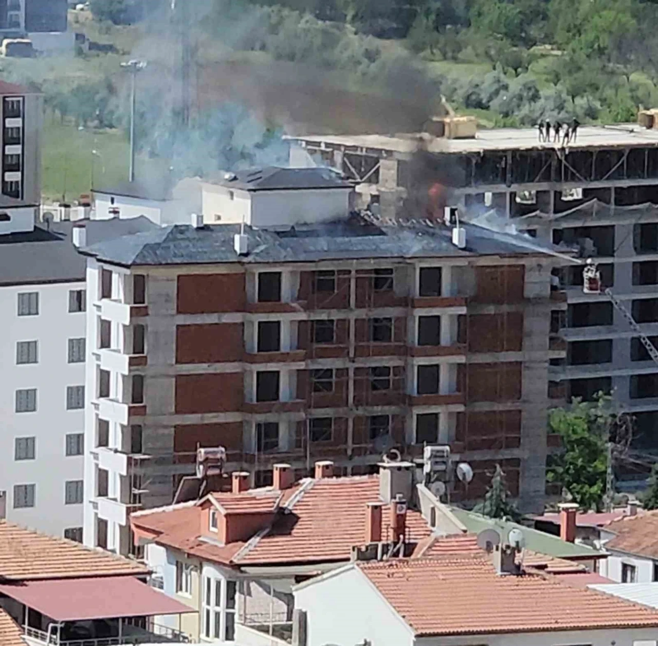 Elazığ’da inşaat halindeki binanın çatısında çıkan yangın, itfaiye ekiplerince söndürüldü.