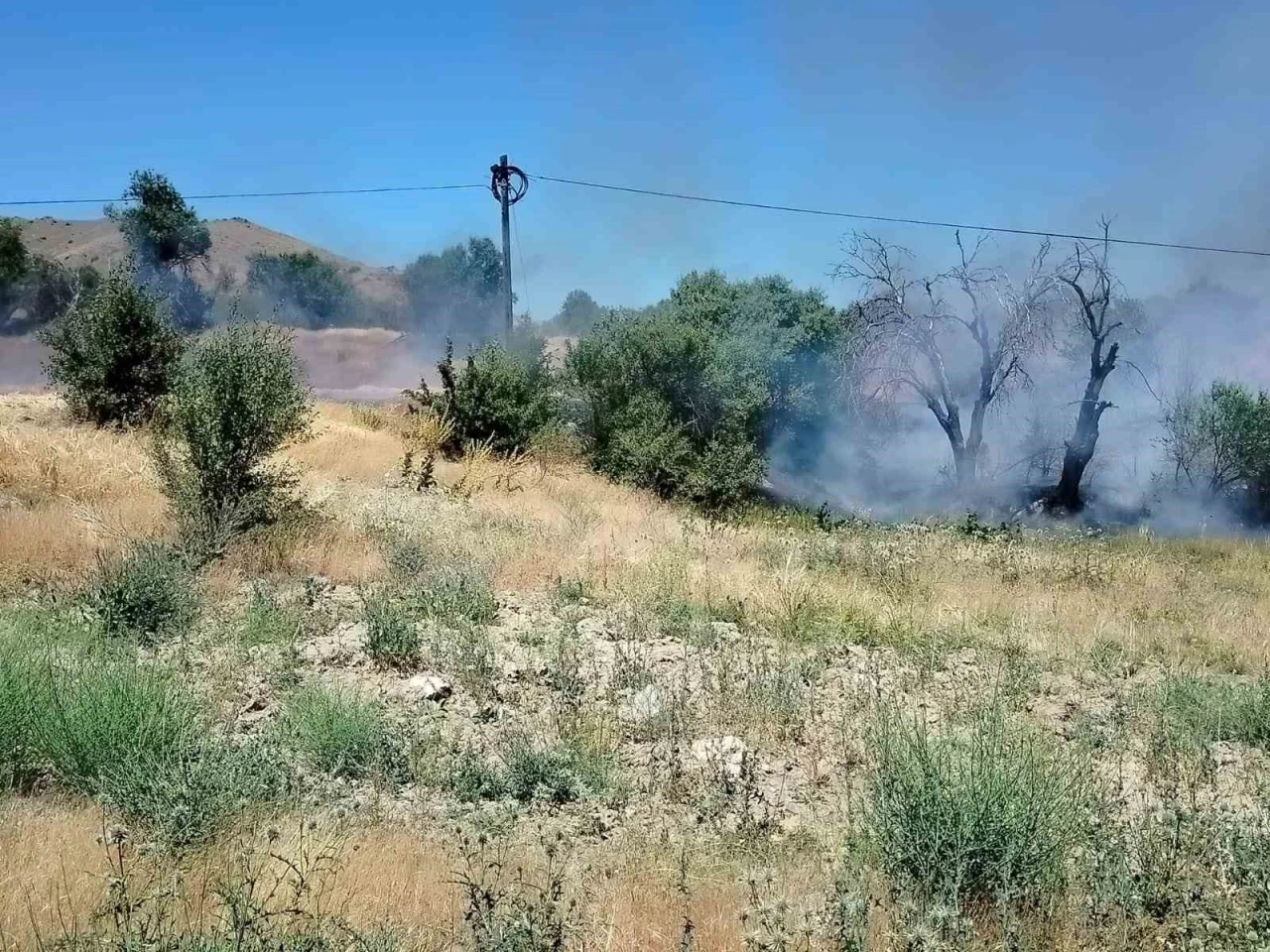 Elazığ’ın Keban ilçesinde otluk ve ağaçlık alanda çıkan yangına ekipler müdahale ediyor.