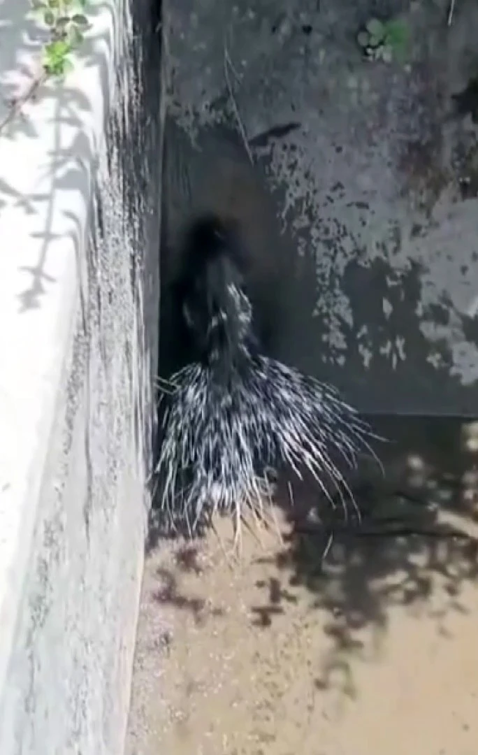 Afrika’da yaşadığı bilinen ve nadiren Türkiye’de de görülen oklu kirpi, Baskil ilçesi Gemisi köyünde boş bir sulama havuzunda görüntülendi. Bir kişi tarafından görüntülenen oklu kirpi, kısa bir süre sulama havuzunda durduktan sonra gözden kayboldu.
