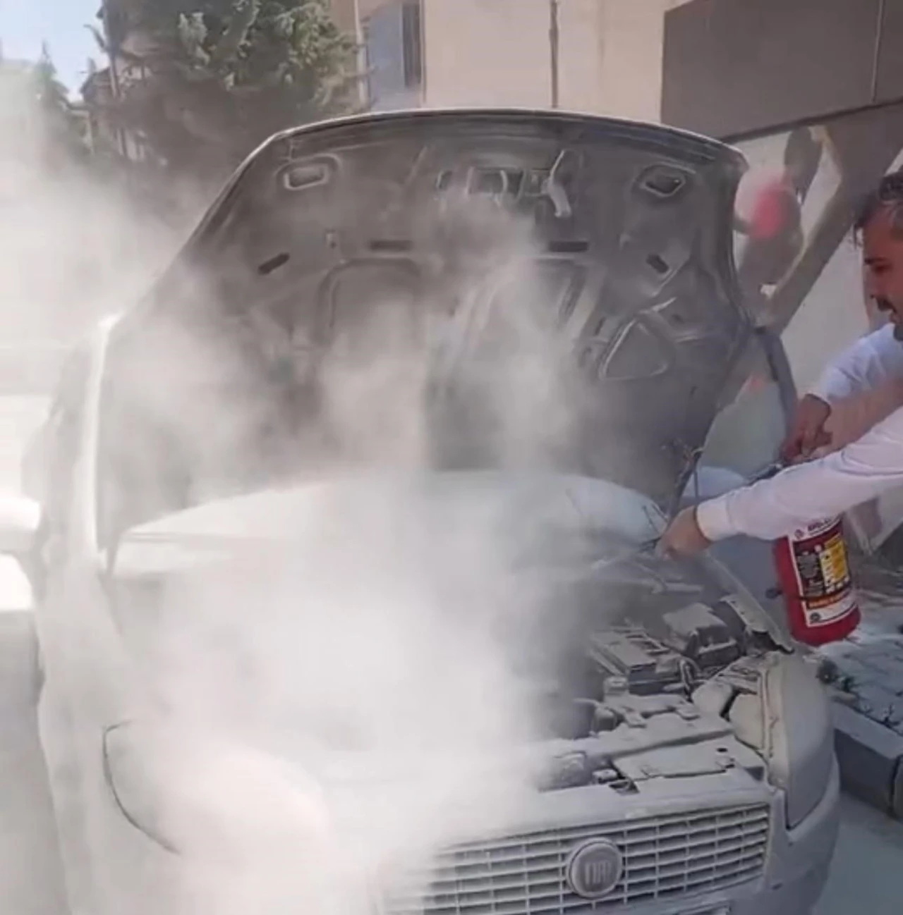 Edinilen bilgilere göre Cumhuriyet Mahallesi’nde park halindeki bir otomobilde çıktı. Çocuğunu yakındaki kurs merkezine bırakan araç sahibi içeri girdikten kısa süre sonra, otomobilden duman çıkmaya başladı. Yükselen dumanları fark eden kurs merkezi çalışanları yangın tüpleriyle müdahale ederek alevleri büyümeden söndürdü. O anlar çevredeki bir vatandaşın cep telefonu kamerasıyla kaydedildi.