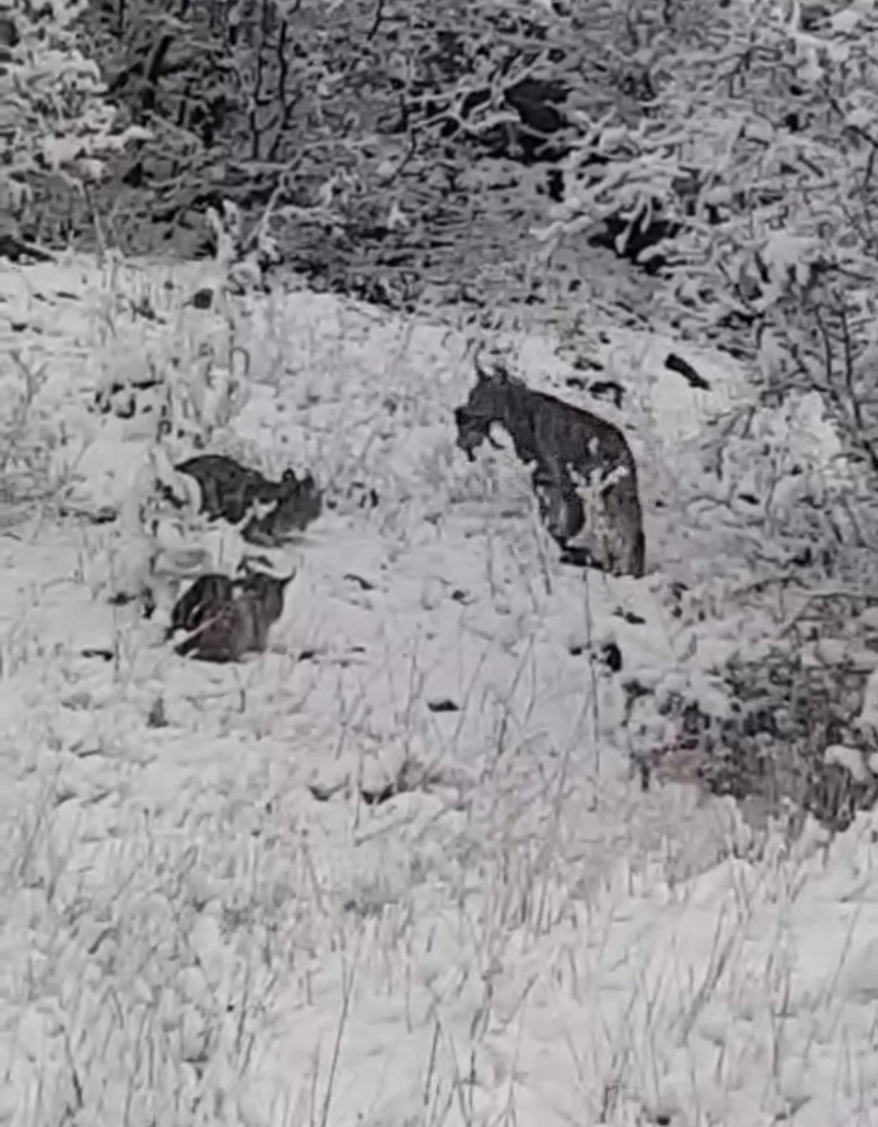 Dünya Doğa ve Doğal Kaynakları Koruma Birliği’nin (IUCN) nesli tükenme tehlikesi altında olan türlerin yer aldığı kırmızı listesinde bulunan bir anne vaşak ve 2 yavrusu, Karakoçan ilçesi Balcalı köyü kırsalında görüntülendi. Kar üzerinde yakaladıkları kekliği yerken Kenan Çavundur tarafından görüntülenen vaşaklar daha sonra ormanlık alana girerek gözden kayboldu. O anlar cep telefonu kamerasına yansıdı.