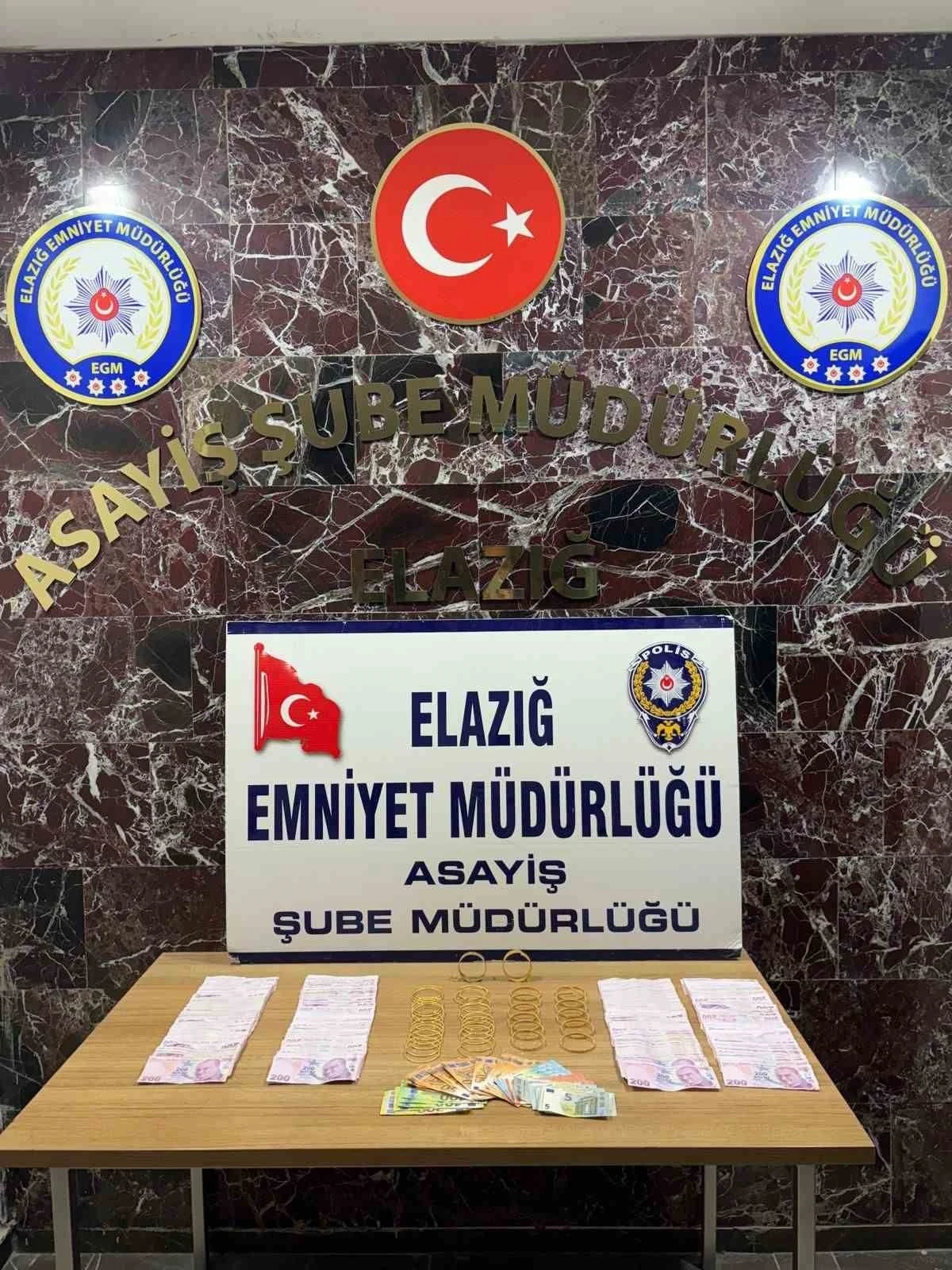 Elazığ Cumhuriyet Başsavcılığı koordinesinde İl Emniyet Müdürlüğü Asayiş Şube Müdürlüğü tarafından, 9 - 10 Nisan 2025 tarihlerinde, İzzetpaşa Mahallesi Kuyumcular Çarşısında 1, Kovancılar ilçesinde 2, Karakoçan ilçesinde 1 ve Diyarbakır’ın Hani ilçesinde 1 olmak üzere toplam 5 farklı kuyumcuya sahte altın bilezik satarak toplam 760 bin 700 lira ve 2 bin 495 Euro haksız kazanç elde eden şüpheli şahısların yakalanmasına yönelik güvenlik kamerası ve saha çalışmaları gerçekleştirildi. Yapılan çalışmaların ardından gerçekleştirilen operasyonda 4 şüpheli şahıs Diyarbakır’da yakalandı. Yapılan aramalarda 45 adet sahte altın bilezik, dolandırıcılık olayından elde edildiği değerlendirilen 2 bin 100 Euro ve 60 bin Türk Lirası ele geçirildi.