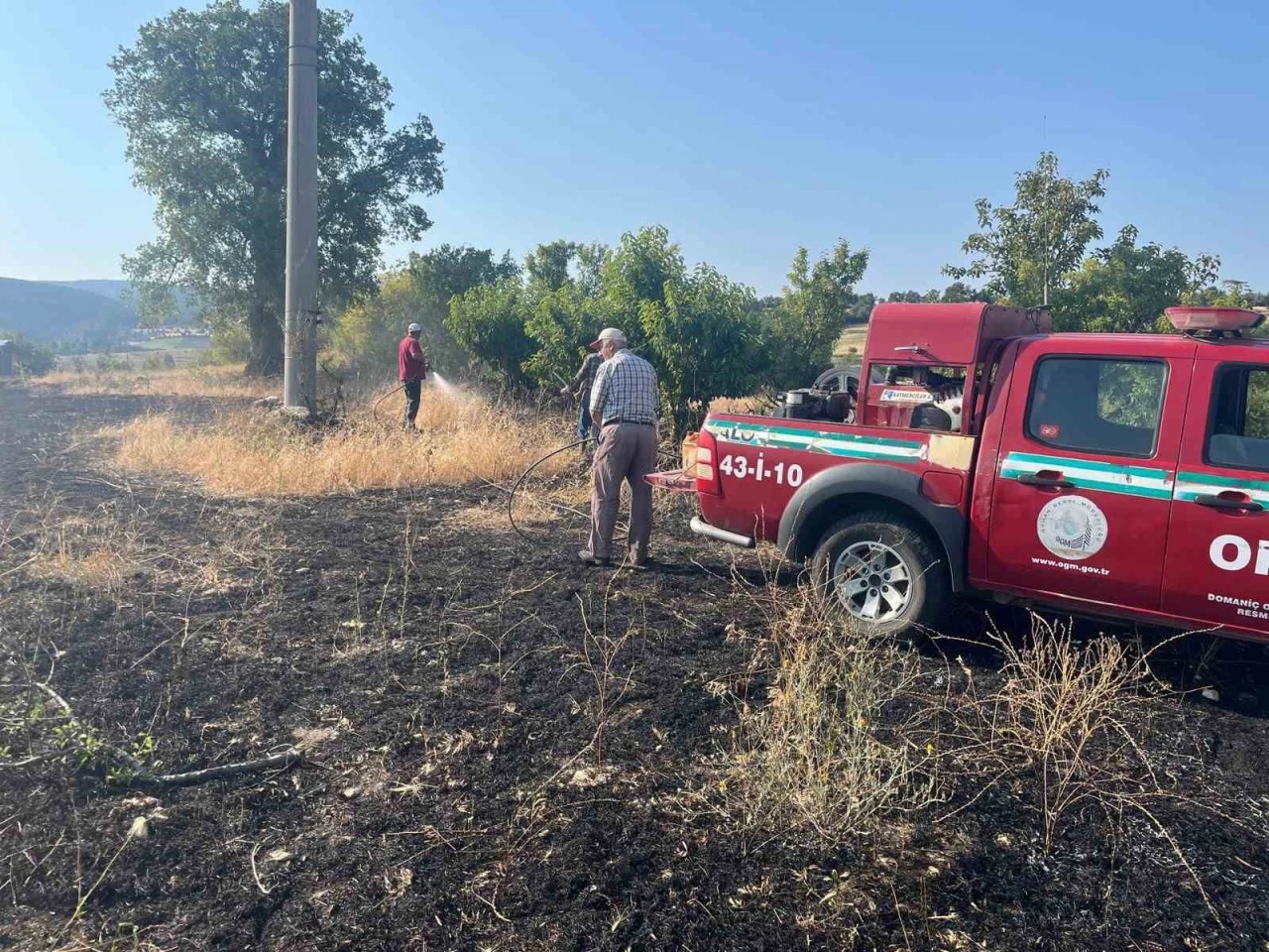 Kütahya’nın Domaniç ilçesinde çıkan anız yangını, orman ve itfaiye ekiplerinin hızlı müdahalesiyle kısa sürede kontrol altına alındı.