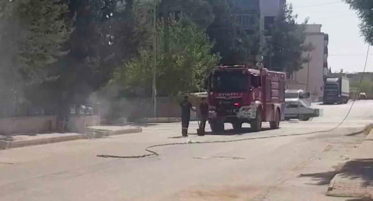 Adıyaman’ın Malazgirt Mahallesi Rekabet Ortaokulu önündeki elektrik direğinde yangın çıktı. Aşırı sıcaklar ve aşırı yüklenme nedeniyle elektrik direğine bağlı kablo yanarak yola düştü.