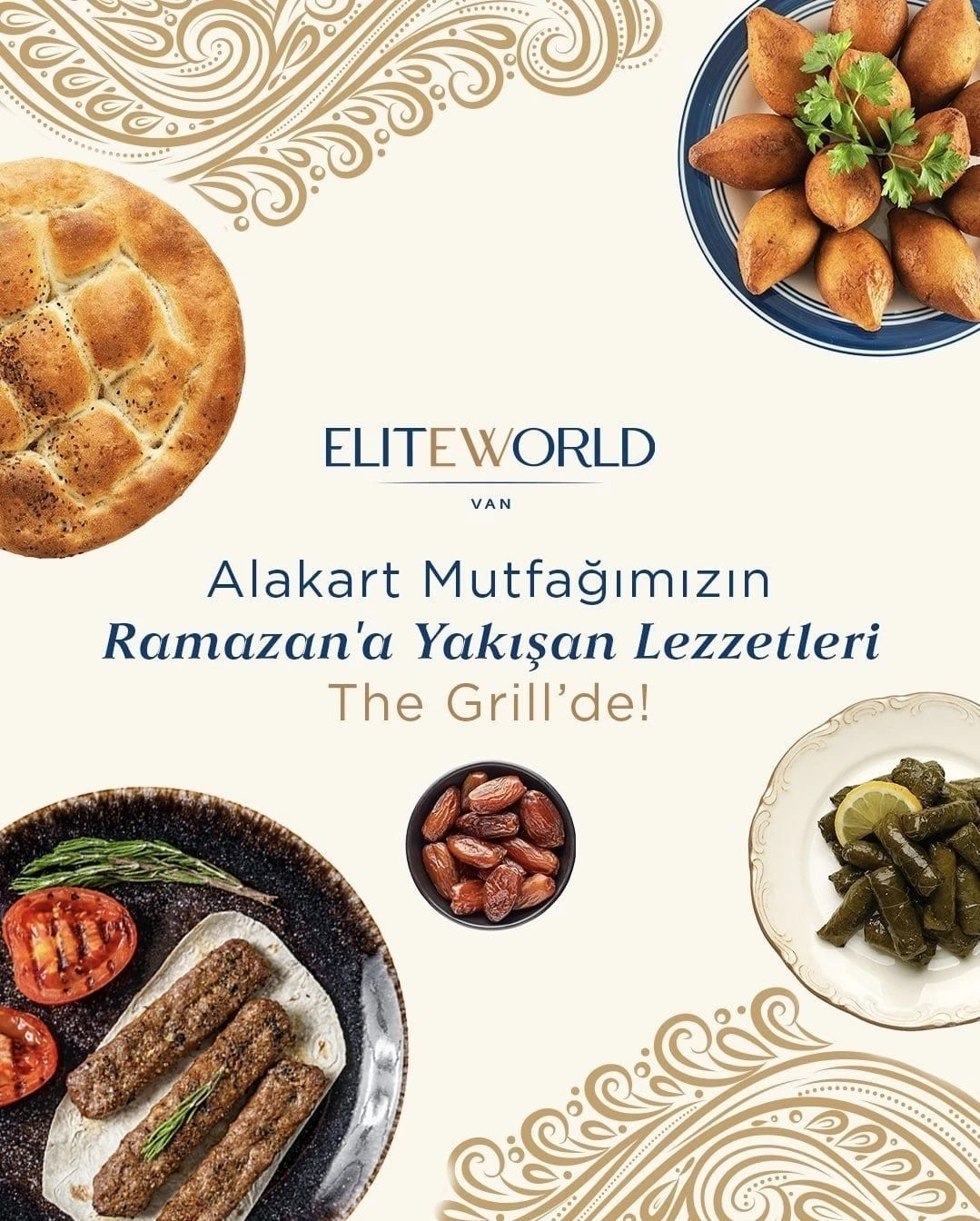 Ramazan ayı nedeniyle hazırlıklarını tamamlayan Elite World Van Hotel, misafirlerine iftar programı hazırladı. Konuyla ilgili bir açıklamada bulunan Elite World Van Hotel Genel Müdürü Oktay Aksoy, Ramazan ayına özel iftar menüleri hazırladıklarını ifade ederek, "Elite World Van Hotel’in ziyafet salonlarında gruplara özel set menü alternatifleri sunuyoruz. Ayrıca The Grill’de, alakart iftar yemeği programı ile halkımızın hizmetindeyiz. Bunun yanında yine Ramazan ayı boyunca şık ve nezih ziyafet salonlarımızda da tasavvuf müziği eşliğinde gruplara özel set menü alternatiflerimiz bulunuyor. Rezervasyon yapmak isteyenlerin 0432 484 11 11 No’lu telefonu aramaları yeterli olacaktır. Bu vesileyle Ramazan ayının ilimiz, ülkemiz ve tüm Müslümanlar için barışa, huzura ve kardeşliğe vesile olmasını diliyorum" dedi.