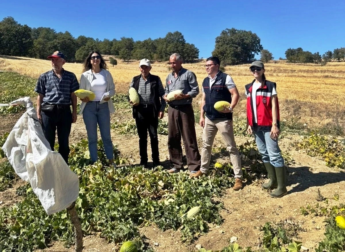 Kütahya’nın Emet ilçesi Göncek köyü’nde "Organik Göncek Kavunu" projesi çerçevesinde sertifikasyon işlemleri için proje paydaşlarına ait kavun ekili tarlalardan numuneler alındı.