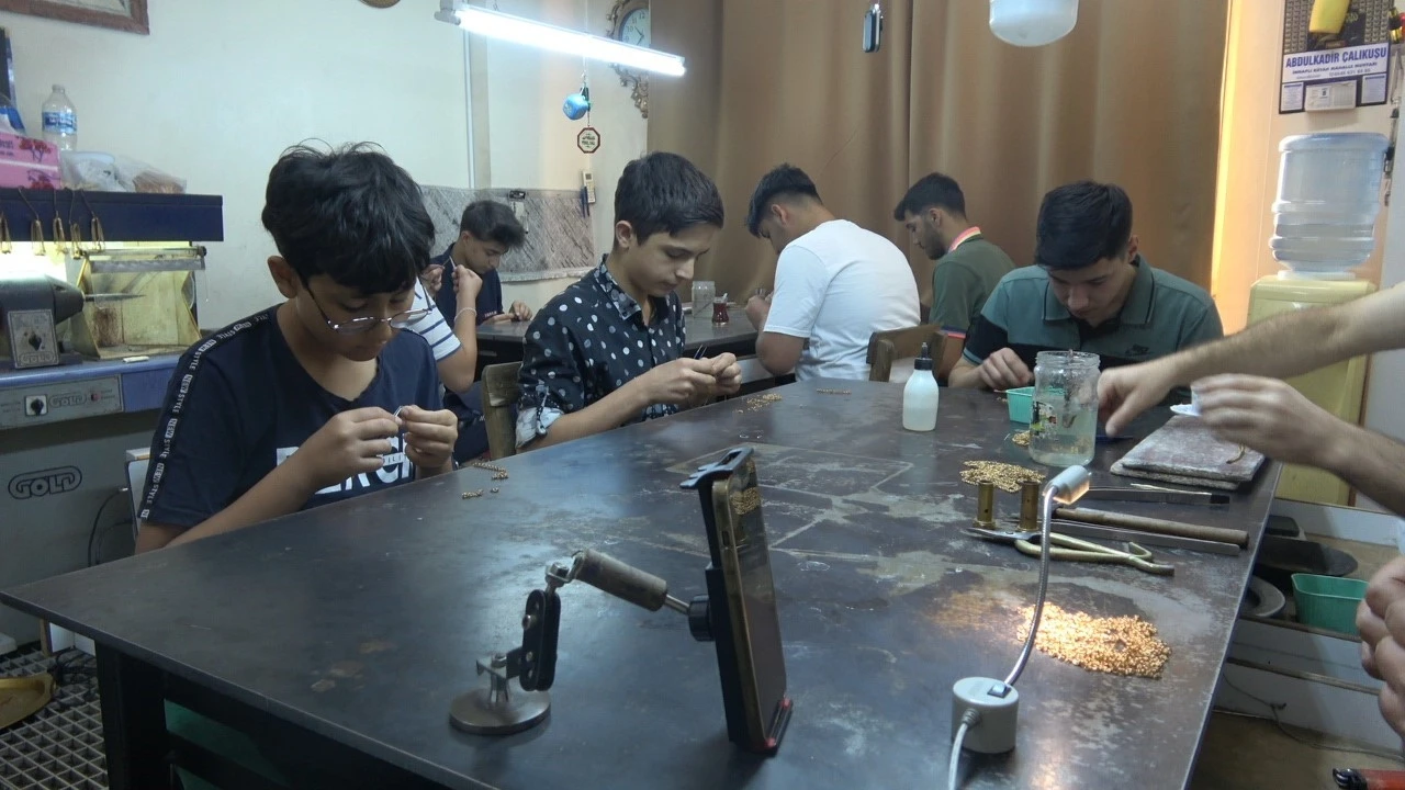 Kilis’te yeni çıraklar, ustalarının yanında altın işlemeyi öğrenerek hayata sağlam bir meslekle adım atıyor.