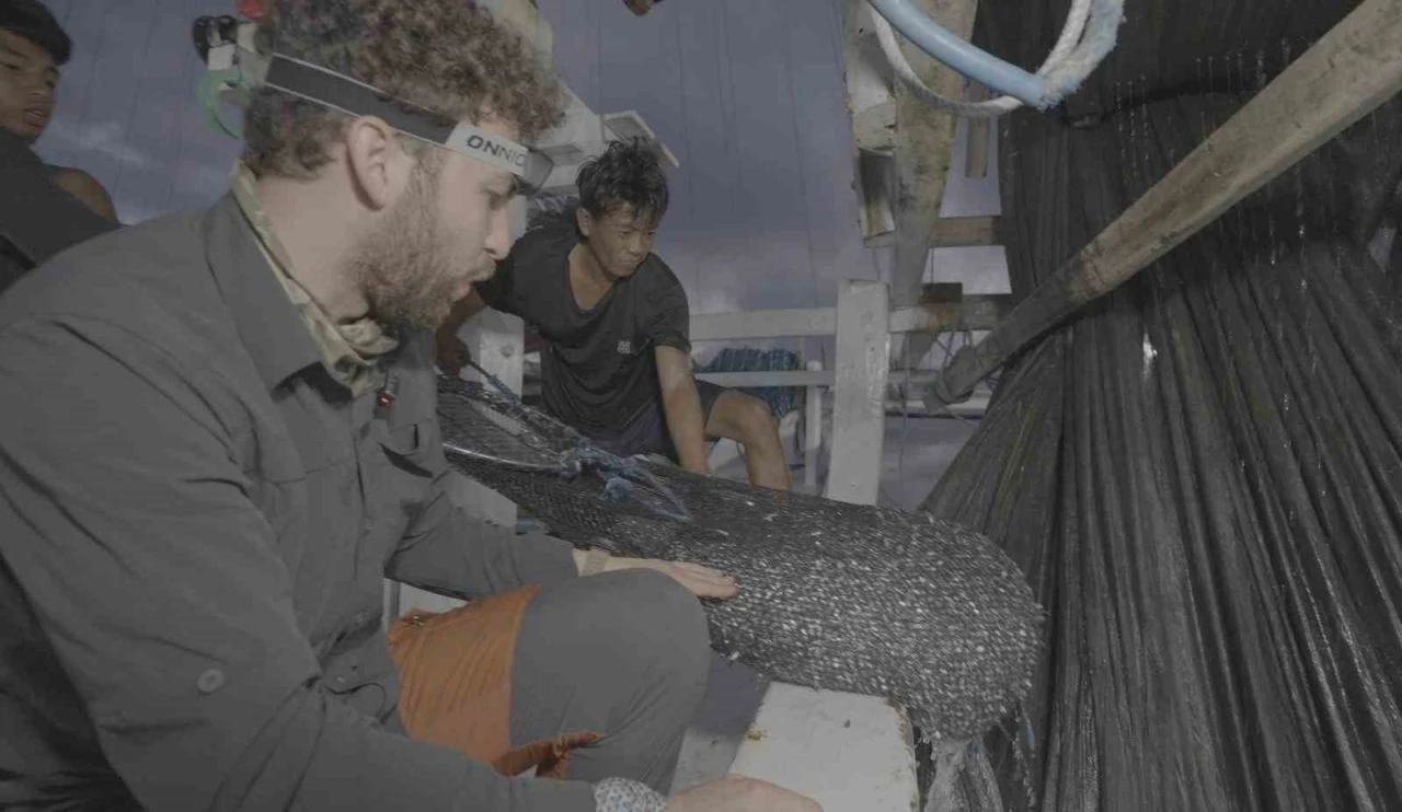 Belgesel çekimi için Endonezya’da bulunan Veteriner Hekim Doğanay Vural ve arkadaşları teknede balık yakalarken, ağlara bir balina köpekbalığı takıldı. Veteriner Hekim Vural, balıkçı ağlarına yakalanan balina köpekbalığını kurtarmak için ağları bıçakla kesmeye başladı. Uzun uğraşlar sonucu balina köpekbalığı ağlardan kurtulurken, o anlar kameraya yansıdı.