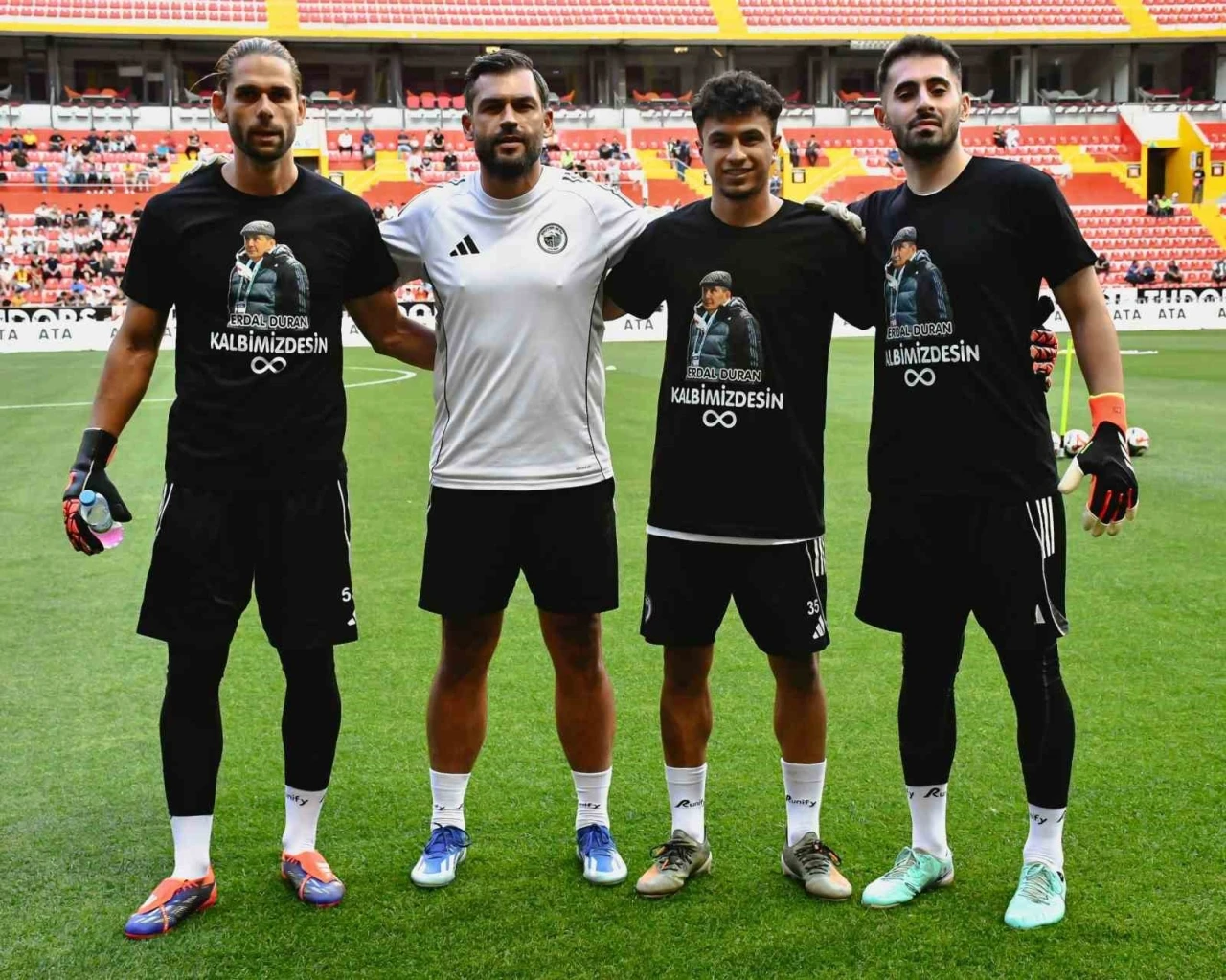 Geçtiğimiz günlerde hayatını kaybeden Kayserispor’un büyük emektarı merhum Erdal Duran, unutulmadı. Süper Lig ekiplerinden Kayserispor ile TFF 3. Lig ekiplerinden Erciyes 38 FK arasında oynanan hazırlık maçında futbolcular; ısınmaya Erdal Duran’ın fotoğrafının olduğu ’Kalbimizdesin’ yazılı tişörtle çıktı.
