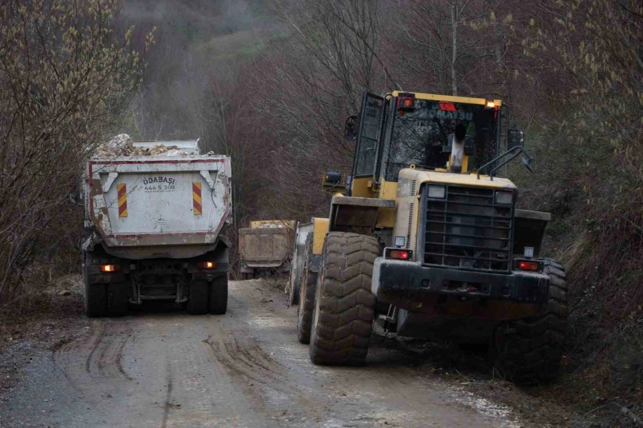 DÜZCE (İHA) – Düzce İl Özel İdaresi Yol ve Ulaşım Hizmetleri Müdürlüğü ekipleri, il genelinde daha önce meydana gelen heyelanlarda olduğu gibi Erdemli Köyü’nde yaşanan heyelana da kısa sürede müdahale etti. Yol güvenliğinin sağlanması ve ulaşımda aksama yaşanmaması amacıyla başlatılan çalışmalar aralıksız devam ediyor.