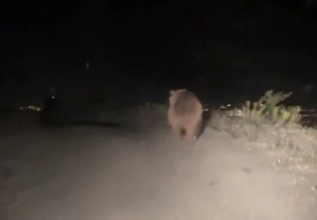 Otomobilin ışığında kara yolu üzerinde bir süre koşan ayı, daha sonra gözden kayboldu.