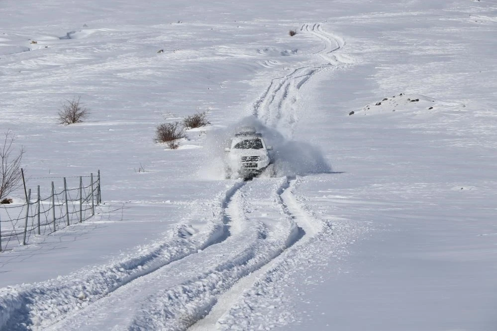 112 Acil Sağlık ekipleri, Erzincan’da kar, tipi ve dondurucu soğuklara rağmen paletli ambulanslarla kırsalda yaşayan vatandaşlara ulaşıyor.
