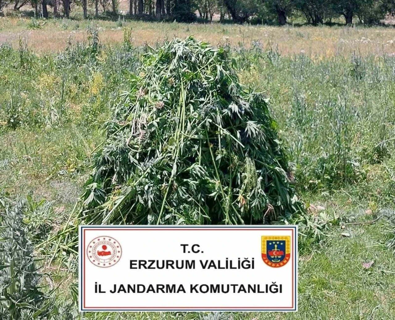 Erzurum’da jandarma ekipleri ekili halde 867 kök kenevir ele geçirdi.