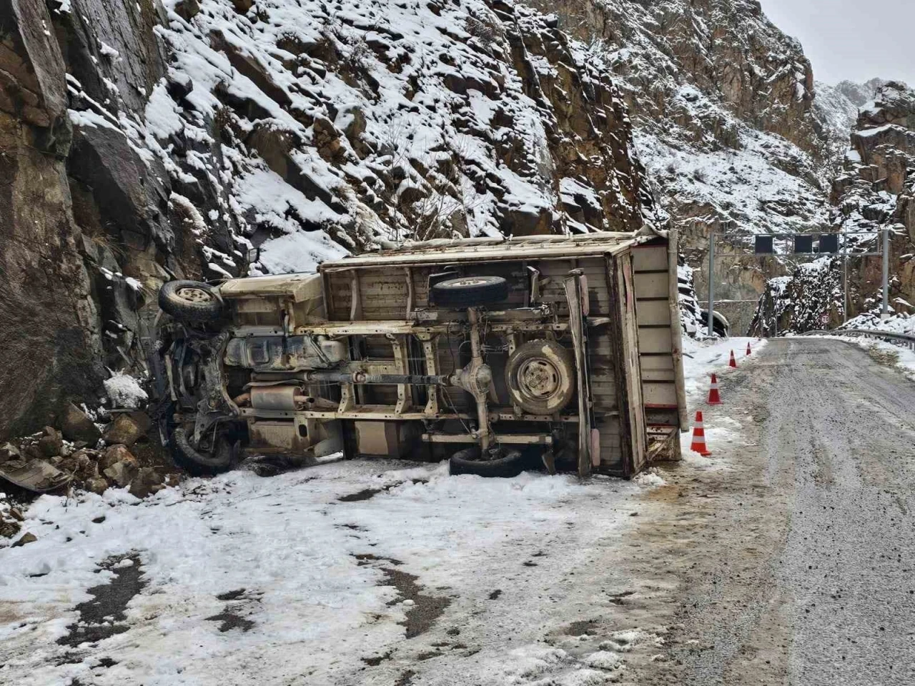 Edinilen bilgiye göre, İspir-Yusufeli karayolu Güllübağı Tüneli çıkışında kayganlaşan yolda sürücüsünün kontrolünden çıkan kamyonet kayalıklara çarparak devrildi. Kazada araç sürücüsü hafif yaralandı. Kaza sonrası jandarma ekipleri bölgede güvenlik önlemleri alırken, sürücülerin bölgeden geçişlerinde dikkatli olmaları istendi.