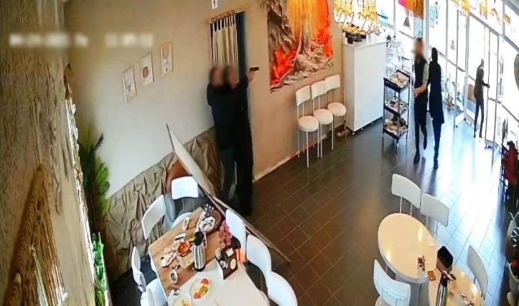 Cinayet ve intihar anı, olay yerindeki güvenlik kamerasına saniye saniye yansıdı. Görüntülerde, Cengiz Altınel’in masayı toplayan eşinin yanına gelerek bir süre konuştuğu, ardından arkasından sol kolunu boynuna dolayarak tabancayı başına dayadığı, çevredeki vatandaşları tehdit ederek bölgeden uzaklaştırdığı, daha sonra eşinin başına bir el ateş ettiği ve ardından aynı silahı kendisine doğrultarak ateşlediği görülüyor.