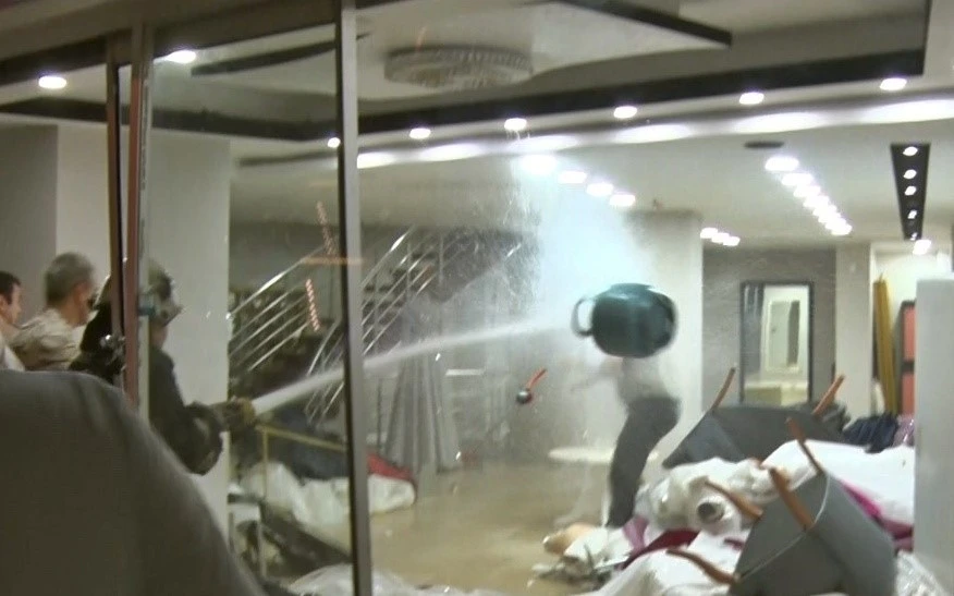 Belirtilen adrese gelen ekipler, kolonya ve dezenfektanı gelinliklerin üzerine döküp elinde çakmakla gezen Bahadır T.’yi uzun süre ikna etmeye çalıştı. Eşinin çocuklarını göstermediğini ve onların velayetini almak istediğini belirten Bahadır T. yine eşinin gelinlik mağazasının sattığını ileri sürüp eylemi bu yüzden yaptığını söyledi. Ekiplerin tüm çabalarına rağmen gelinlikleri parçalamaya devam edip içerideki eşyalara da zarar veren Bahadır T. bir süre sonra ise üst kattan aldığı mutfak tüpünü getirdi. Tüpe çakmağı dayayınca tazyikli suyu yedi