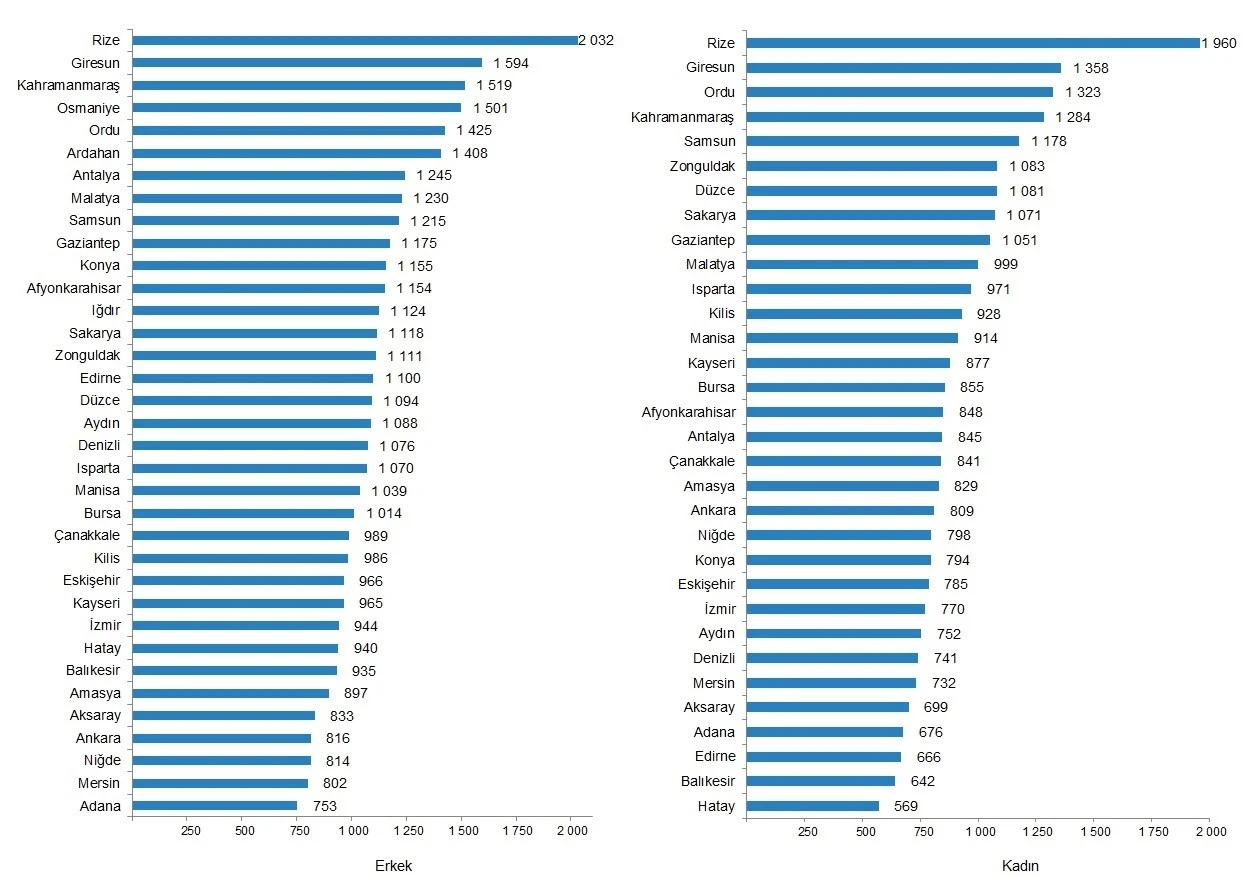 TÜİK, ’Tarımsal İşletme İşgücü Ücret Yapısı, 2024’ verilerini yayımladı. Paylaşılan verilere göre; yurt genelinde tarımsal işletmelerde 2024 yılında mevsimlik tarım işçilerinin günlük ücretleri bir önceki yıla göre yüzde 84,2 artarak 943 TL, sürekli tarım işçilerinin aylık ücretleri yüzde 95,5 artarak 26 bin 259 TL oldu. Mevsimlik erkek işçi ücretleri 84,8 artış göstererek bin 7 TL’ye ulaşırken, kadın işçilerin günlük ücretleri yüzde 85,9 artış göstererek 890 TL’ye ulaştı. Sürekli tarım işçilerine ödenen aylık ücretin erkek işçiler için yüzde 94,8 oranında artarak 27 bin 788 TL, kadın işçiler için ise yüzde 90,5 artarak 19 bin 328 TL olduğu belirtildi.
