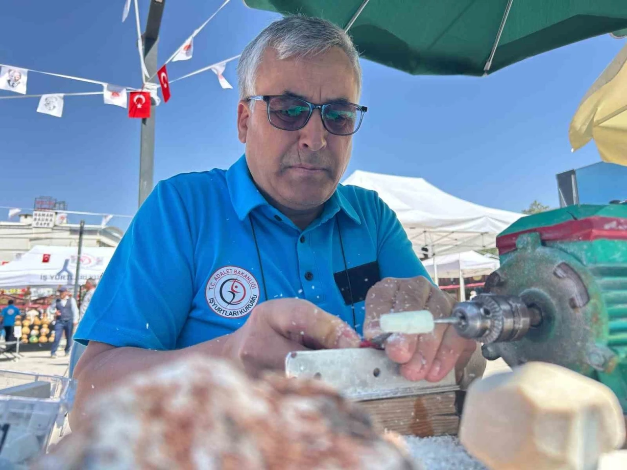 Yerin yaklaşık 300 metre altından çıkarılan lületaşı, doğal yapısıyla dikkat çekiyor. Hafif, gözenekli ve beyaz tonlarındaki yapısıyla zarif süs eşyalarına dönüşen bu değerli taş, aynı zamanda sanata dönüşme serüveninin güzel bir örneğini yansıtıyor. Her biri titizlikle işlenmiş pipo, tespih, süs objeleri ve takılar, fuarda ziyaretçilerin ilgisini çekerken, el sanatlarının toplumla buluştuğu bu anlamlı organizasyon sosyal sorumluluk yönüyle de takdir topluyor. Yetkililer, lületaşı işlemeciliğinin hükümlülere hem bir meslek kazandırdığını hem de geleneksel el sanatlarının yaşatılmasına katkı sunduğunu belirttiler.