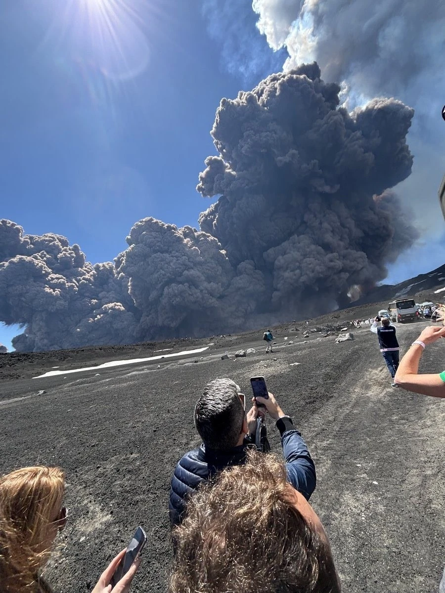 İtalya’daki Etna Yanardağı’nda turistlerin olduğu sırada patlama meydana geldi. Turistlerin korku ve panikle bölgeden kaçtığı anlar kameralara yansıdı.