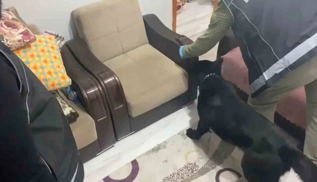 Samsun’da evdeki koltuğa zulalanmış 800 gram metamfetamini narkotik köpeği Tony buldu.