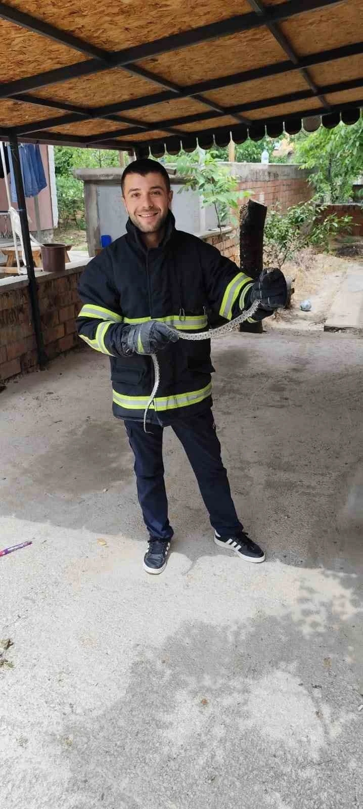 Çorum’un Osmancık ilçesinde bir eve giren yılan, itfaiye ekipleri tarafından yakalanarak doğal yaşam alanına bırakıldı.