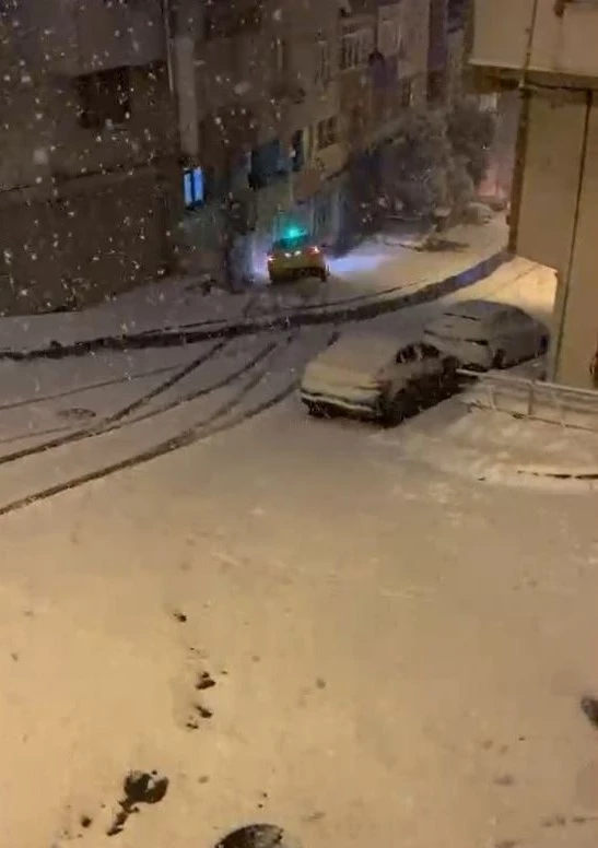Eyüpsultan’da ticari bir taksi, kar nedeniyle kayganlaşan yolda yokuş aşağı kaymaya başladı. Hızla kayan taksi apartmanın önüne düştüğü o anlar kamera yansırken, taksi sürücüsü kazayı yara almadan atlattı.