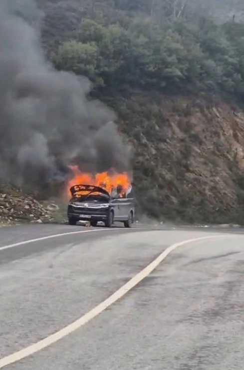 İtfaiye ekiplerinin müdahalesiyle yangın kısa sürede kontrol altına alınarak söndürülürken, minibüs kullanılamaz hale geldi. Aracın alev alev yandığı anlar ve ekiplerin çalışmaları vatandaşlar tarafından cep telefonu kamerası tarafından kaydedildi.