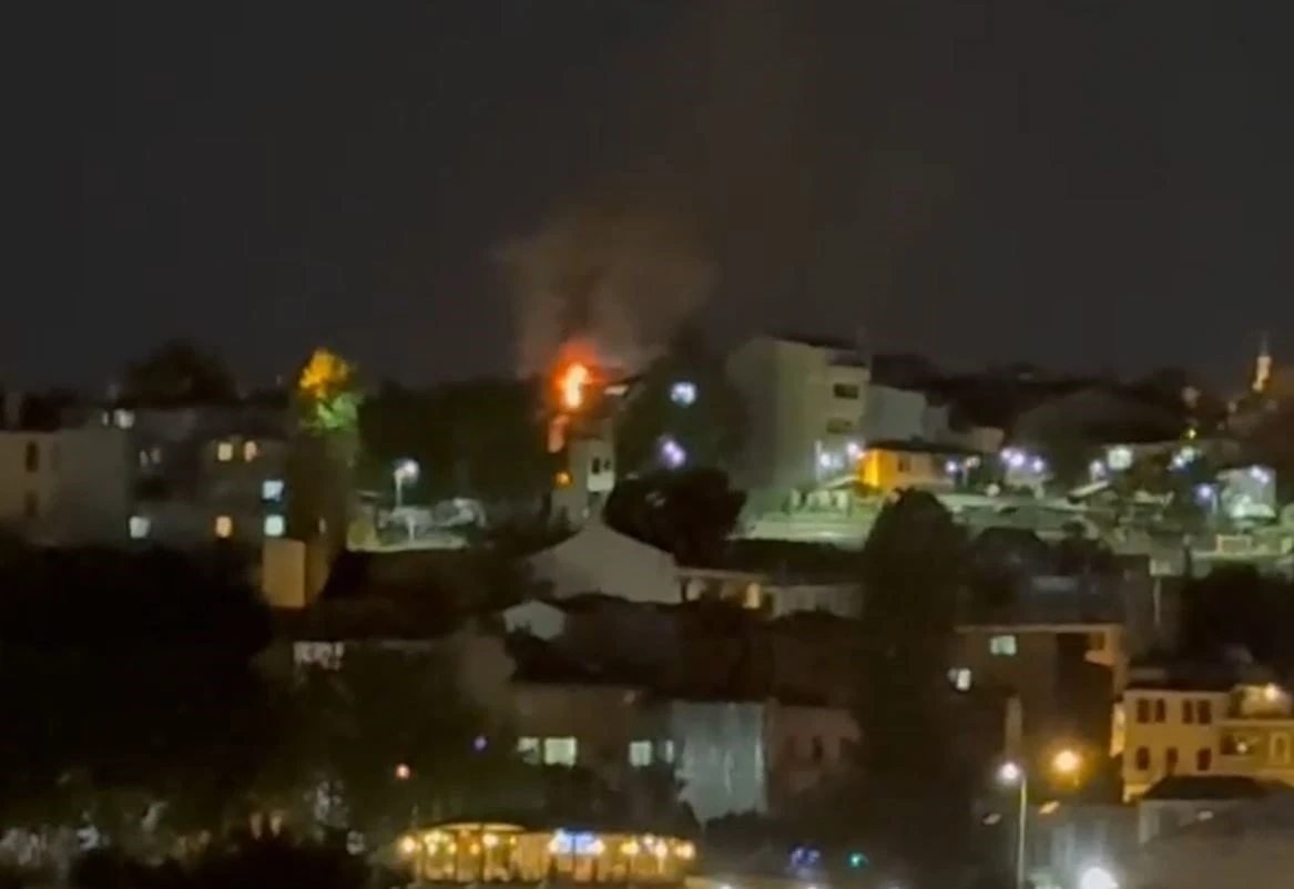 Fatih’te 3 katlı binanın çatı katı alev alev yandı