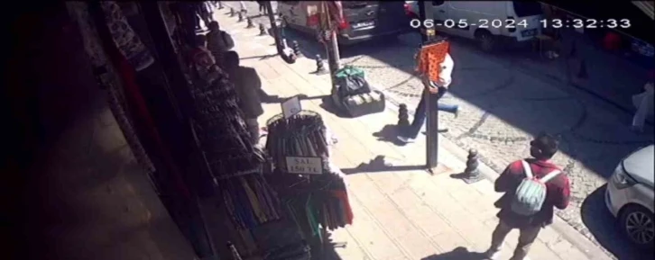 Güvenlik kamerasına yansıyan görüntüde yaşı küçük çırağın, turisti kovaladığı görülüyor. Kaçan turist bu esnada bir başka dükkana girerek kaçmaya çalışıyor. Çırak dükkana giren turisti kovalamaya devam ederek elindeki bıçağı savurduğu anlar görülüyor. Çırak daha sonra kaçarak uzaklaşıyor.