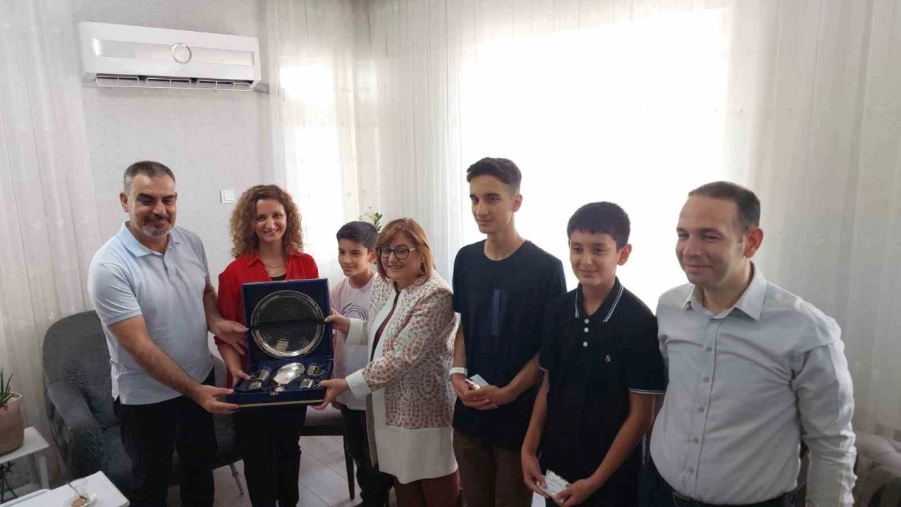 Gaziantep Büyükşehir Belediye Başkanı Fatma Şahin, YKS-2025 Türkiye birincisi olan Ahmet Eren Özyurtseven ile LGS-2025 Türkiye birincisi olan kardeşi Mehmet Kerem Özyurtseven’i evlerinde ziyaret ederek tebrik etti. Şahin, Türkiye birincisi ağabey-kardeşi başarılarından dolayı altınla ödüllendirdi.