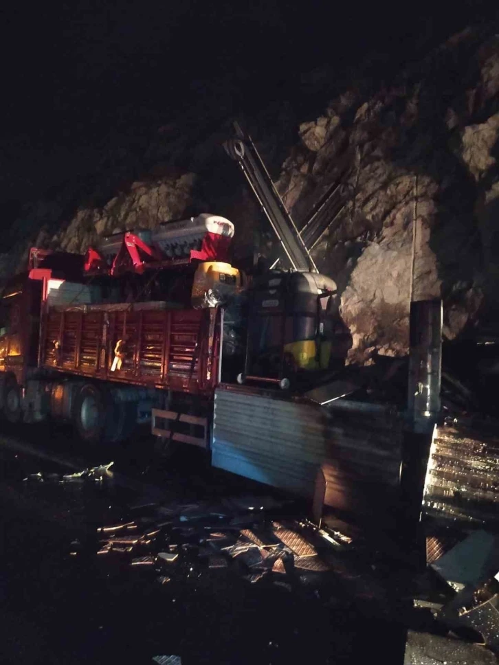 Mersin’in Tarsus ilçesi Damlama mevkiinde fayans malzemesi yüklü tırın dorse bölümü yandı.