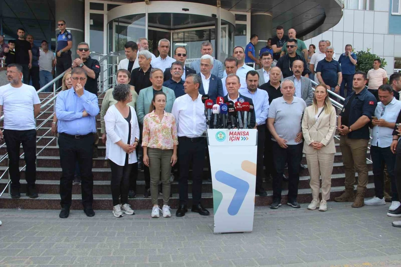 CHP Genel Başkanı Özgür Özel, Mersin Büyükşehir Belediye Başkanı Vahap Seçer ile birlikte elektrik akımına kapılarak ağır yaralanan Manisa Büyükşehir Belediye Başkanı Ferdi Zeyrek’in tedavisinin devam edildiği Manisa Celal Bayar Üniversitesi Hafsa Sultan Hastanesi bahçesinde basın açıklaması düzenledi. "Bu badireli günleri de zorlu günleri de hep beraber atlatacağız"