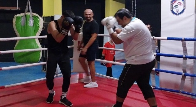 Avrupa Altın Kemer Boks Şampiyonu Kubilay Alcu’yu ziyaret eden Fethiye Kaymakamı Alper Balcı, boks eldiveni giyip ringe çıkarak ünlü boksçu ile antrenman yapıp ter attı.