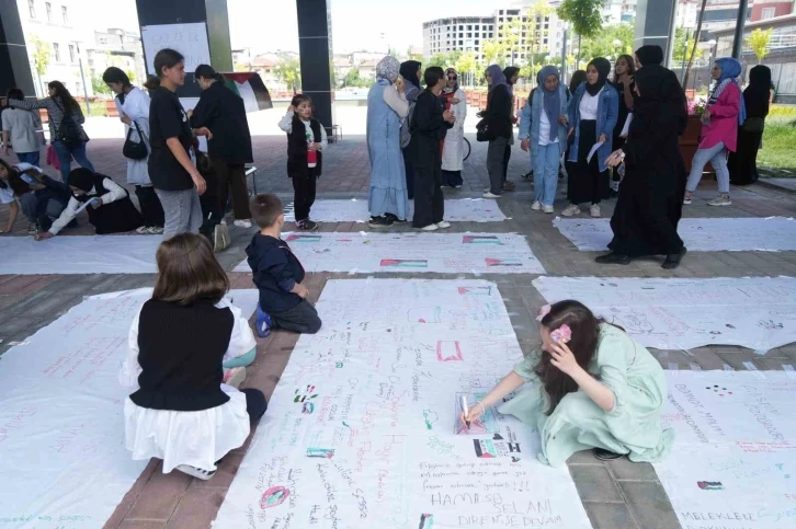 Etkinliğe katılanlar yazdıkları mesajlarla Filistin’e olan desteklerini ve İsrail’in saldırılarına karşı tepkilerini dile getirdiler.