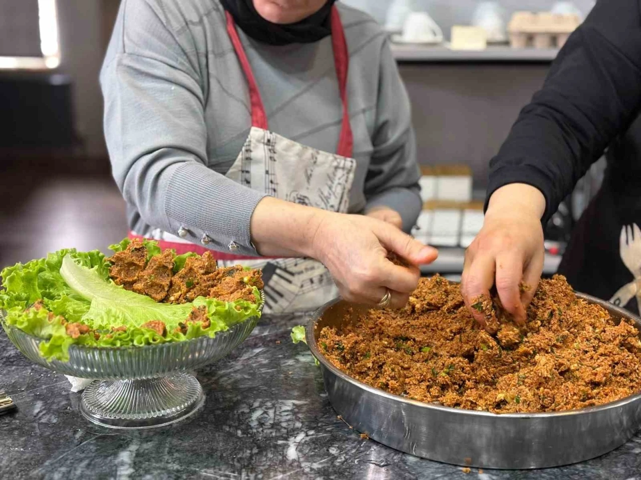 Sincan Belediyesi Gastro Sincan’da eğitim alıp gastronomi alanında bilgi ve becerilerini geliştiren eski kursiyerler lezzet dolu bir buluşma gerçekleştirdi. Çeşit çeşit pastalar, kurabiyeler yapıldı; çiğ köfteler yoğruldu. Sincan Belediyesi Gastro Sincan’da eğitimler devam ederken, kimi zaman da etkinlikler gerçekleştiriliyor. Gastro Sincan’da eğitim görüp MEB onaylı sertifika alarak profesyonelliğe adım atan kursiyerler, bir araya gelerek keyifli bir buluşma gerçekleştirdi. Birbirinden lezzetli pastalar yapıldı, özenle süslendi. Çeşit çeşit kurabiyeler hazırlandı. Şanlıurfa yöresine ait lezzetiyle damakları çatlatan yumurtalı çiğköfte yoğruldu. Türk ve Dünya mutfağının inceliklerini öğrenen kursiyerler, ekip çalışması ve mutfak sanatları konusundaki yeteneklerini gözler önüne serdi.