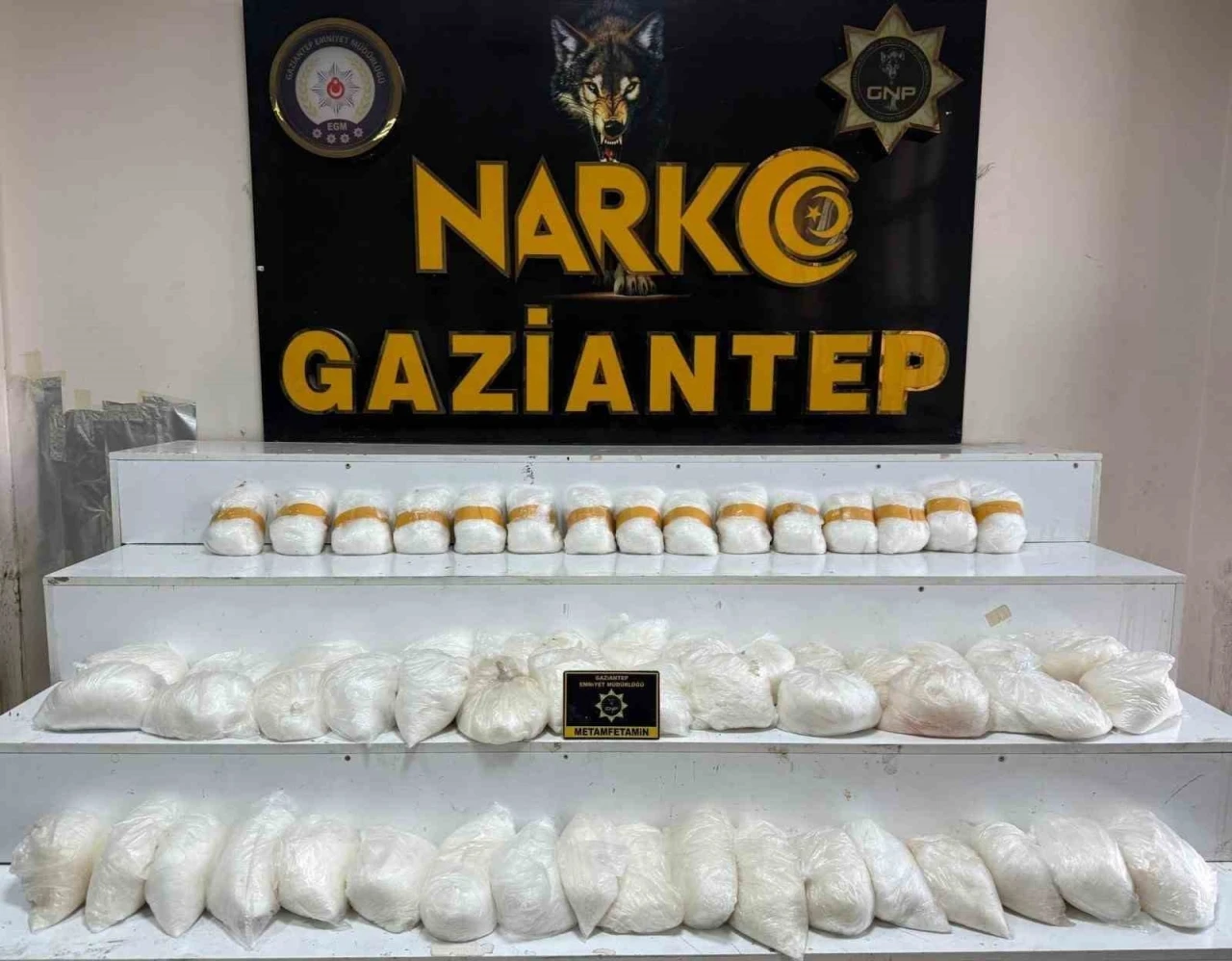 Gaziantep İl Emniyet Müdürlüğü Narkotik Suçlarla Mücadele Şube Müdürlüğü ekipleri ve Cumhuriyet Başsavcılığı koordinesiyle uyuşturucu tacirlerine yönelik operasyon yapıldı. Operasyon çerçevesinde, şüpheli bir araç durduruldu. Araçta yapılan hassas burunlu dedektör köpek destekli adli aramalarda 58 kilo 450 gram metamfetamin ele geçirildi. Olayla ilgili 2 şüpheli yakalandı.