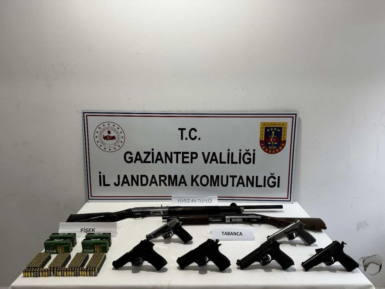 Gaziantep İl Jandarma Komutanlığı ekipleri, silah kaçakçılığı ile mücadeleye yönelik Gaziantep Cumhuriyet Başsavcılığı koordinesinde çalışma yaptı. Yürütülen fiziki ve teknik takip sonucunda Oğuzeli ilçesinde A.B., C.A., F.C., H.Ö. ve K.B. isimli 5 ayrı şüpheli şahsın ikametinde yapılan eş zamanlı arama neticesinde 6 adet ruhsatsız tabanca ve şarjörü, 2 adet ruhsatsız av tüfeği, 257 adet tabanca fişeği ele geçirildi. Gözaltına alınan şüpheli şahıslar hakkında yasal işlemler başlatıldı.