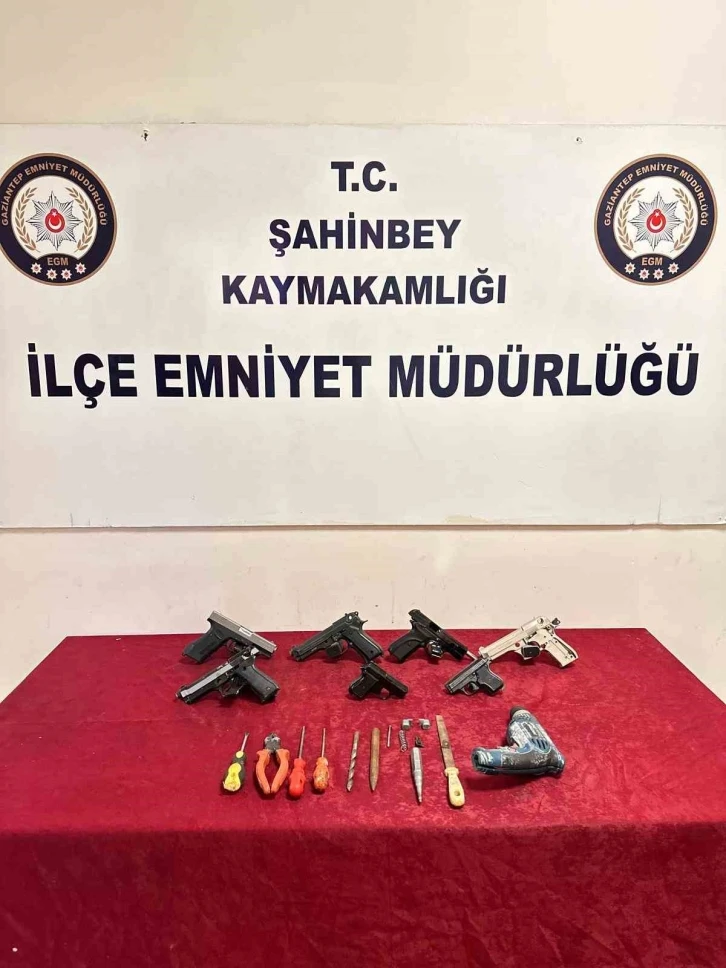 Gaziantep İl Emniyet Müdürlüğü’ne bağlı Şahinbey İlçe Emniyet Müdürlüğü ekipleri 7-8 Temmuz tarihlerinde kent merkezinde operasyon yaptı. Operasyonlarda 11 adet ruhsatsız tabanca, 2 adet tüfek 58 adet fişek, 4 adet şarjör ile çeşitli silah parçaları ve çevirmede kullanılan malzemeler ele geçirildi.