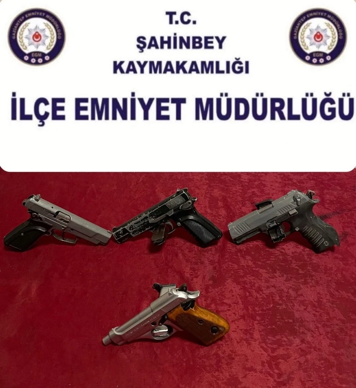 Gaziantep’te Şahinbey İlçe Emniyet Müdürlüğü ekipleri, 19 Ekim tarihinde Cumhuriyet Başsavcılığı koordinesinde çalışma yaptı. Yapılan çalışmalar neticesinde, Şahinbey ilçesinde şüpheli şahıslara ait ikamet, araç ve işyerlerinde yapılan aramalarda 5 adet ruhsatsız tabanca, 3 adet ruhsatsız tüfek, 13 adet fişek ile 5 adet şarjör ele geçirildi. 6 şüpheli gözaltına alındı.