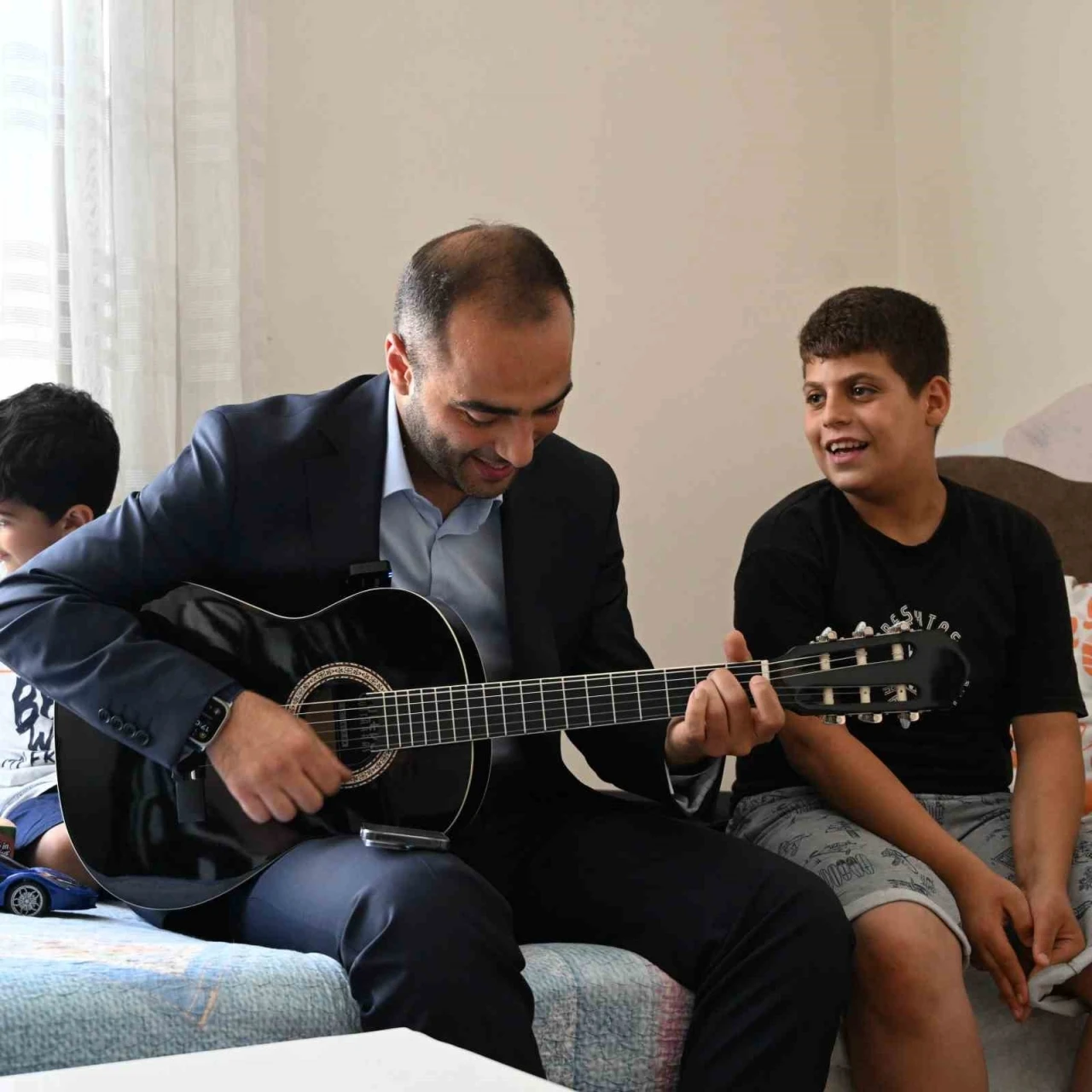 Gaziosmanpaşa Belediyesi Başkan Vekili Eray Karadeniz, geçtiğimiz günlerde sokak ortasında darbedilen 13 yaşındaki özel gereksinimli çocuğu ziyaret etti. Efe’nin gitar çalma hayali olduğunu öğrenen Karadeniz, bu hayalini gerçeğe dönüştürmek için harekete geçti. Başkan Vekili Karadeniz, aileyi tekrar ziyaret ederek, Efe’ye bir gitar hediye etti.