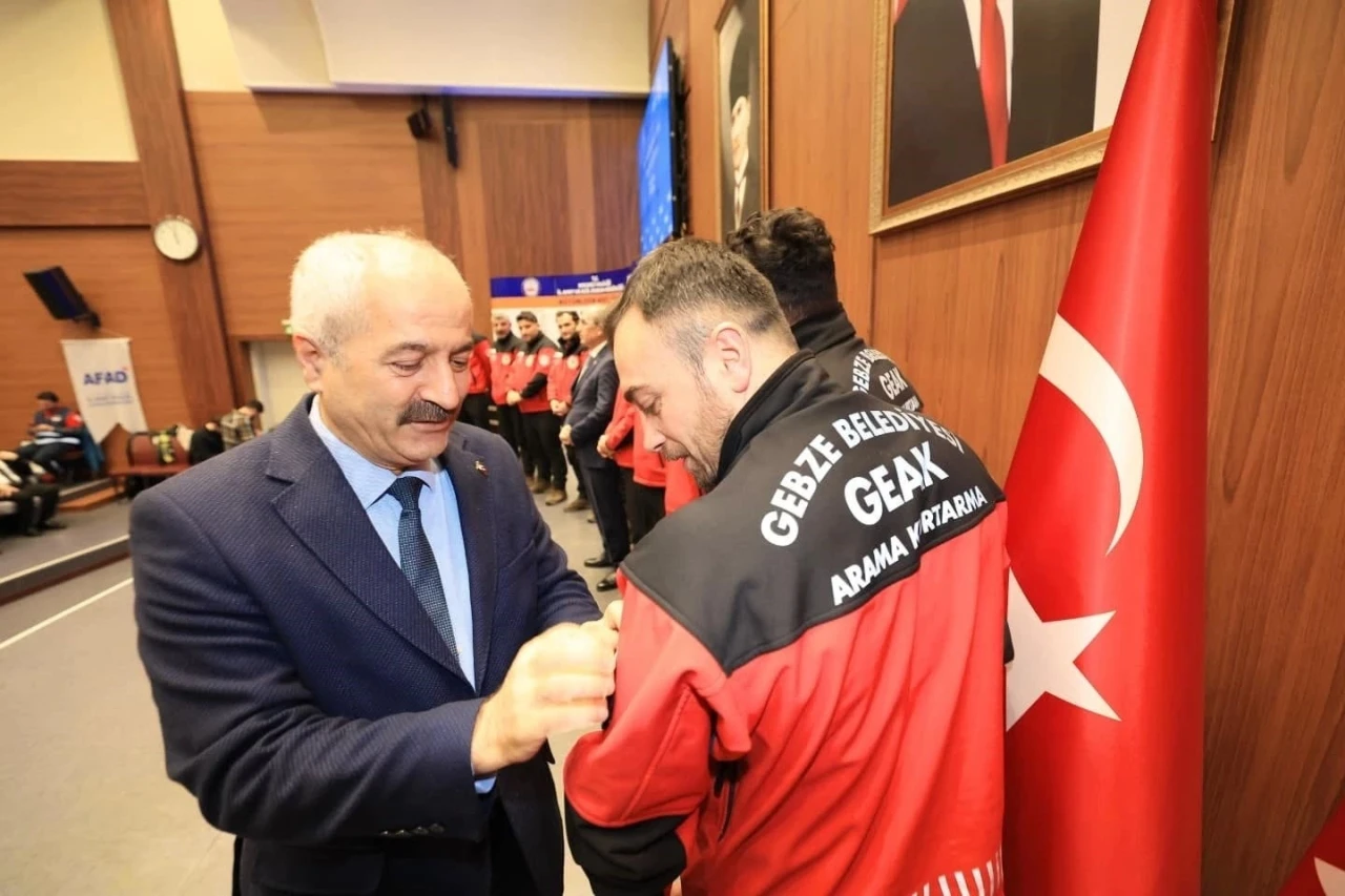 Asrın felaketinde görev alan ve 22 kişiyi enkazdan sağ çıkaran Gebze Belediyesi Arama Kurtarma Ekibi’ne AFAD Akreditasyon Sertifikası ve armaları takdim edildi.