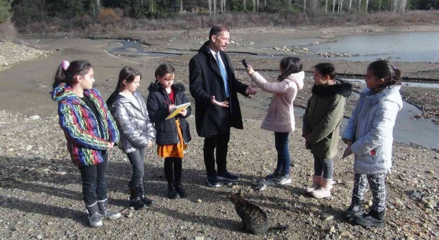 İklim değişikliğinin bariz olarak göründüğü ve su seviyesi yağmur ve kar yağışının azalması ile iyice düşen Ula Göletinde ellerinde kamera ile röportaj yapan öğrenciler, Doç. Dr. Özçelik ile 45 dakikaya varan röportaj gerçekleştirdiler.