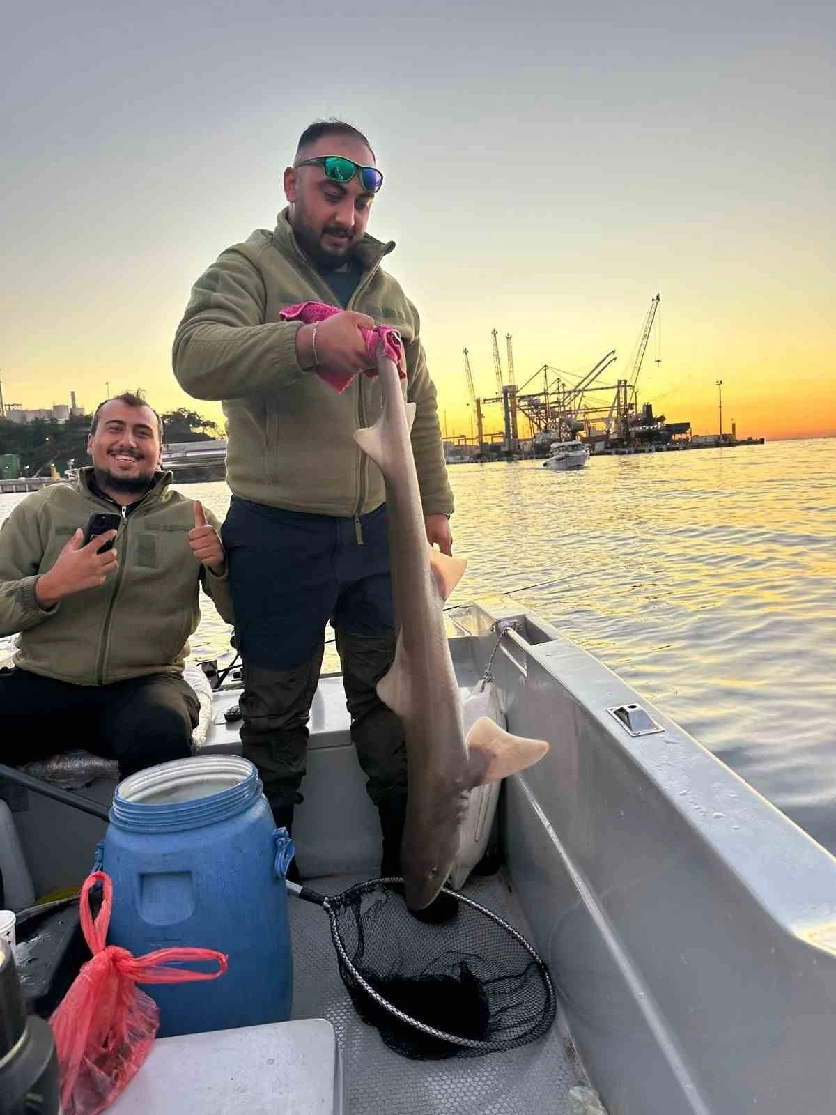 Balıkçılar, köpek balığını görüntüledikten bir süre sonra yeniden denize bıraktı. O anlar cep telefonu kamerasıyla saniye saniye kaydedilirken, görüntüler sosyal medyada kısa sürede ilgi gördü.