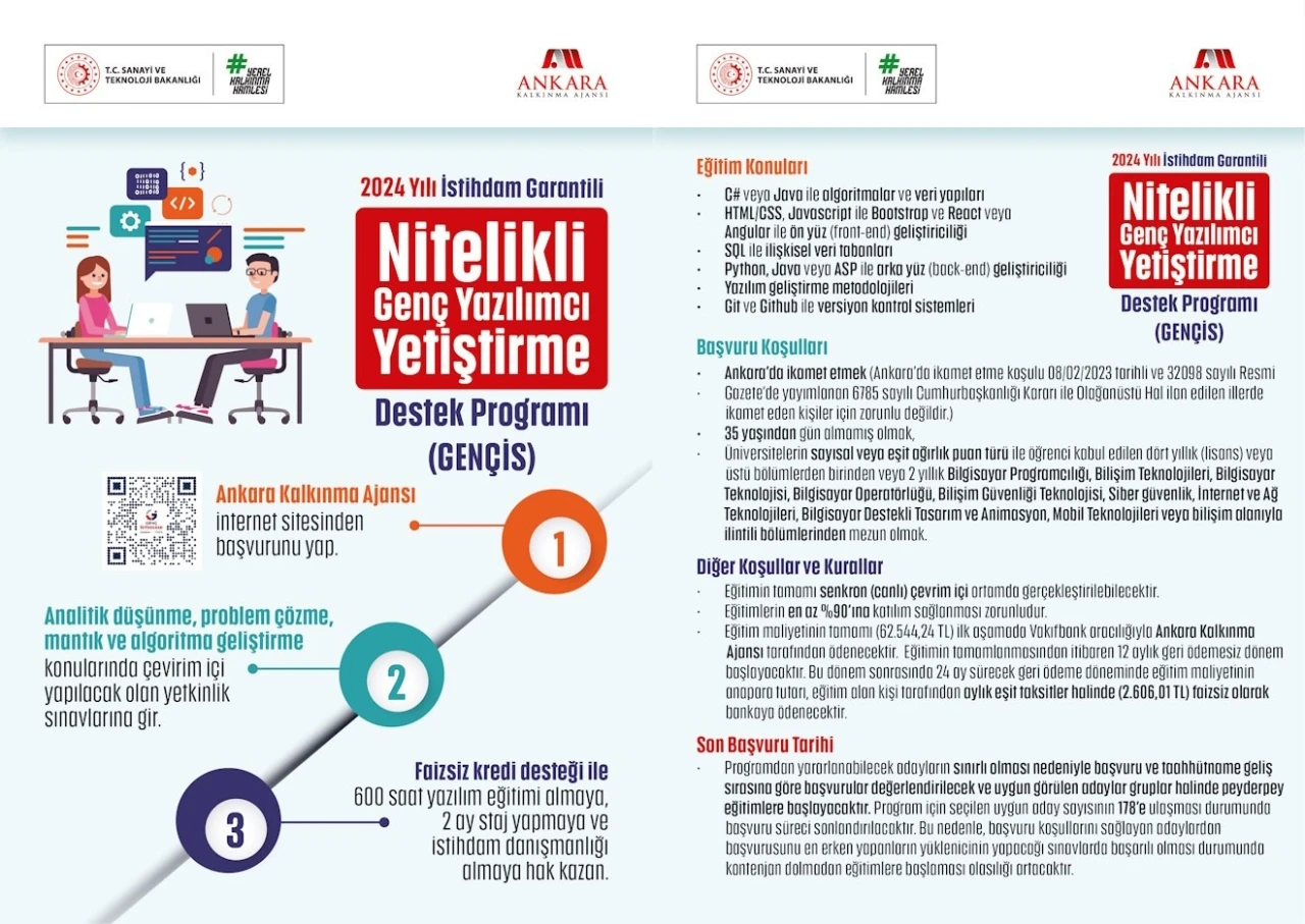 2024 Yılı İstihdam Garantili Nitelikli Genç Yazılımcı Yetiştirme Destek Programı (GENÇİS) başvuruları devam ediyor.