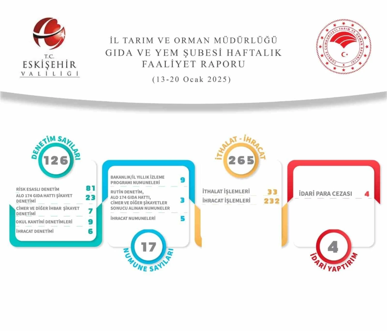 Eskişehir İl Tarım ve Orman Müdürlüğü Gıda ve Yem Şubesi tarafından, 13-20 Ocak tarihli haftalık faaliyet raporu paylaşıldı.