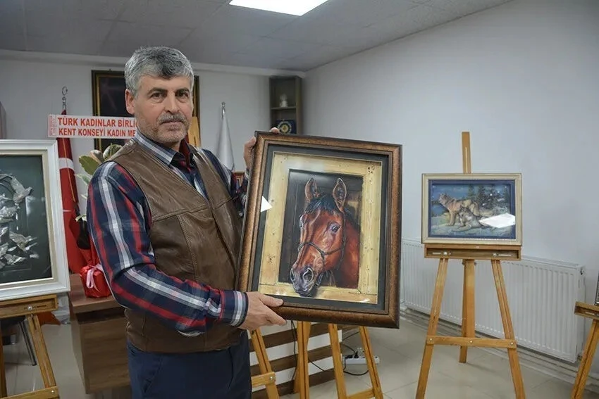 Bilecik’te gittiği sergiden etkilenerek resim yapmaya başlayan Fikret Öztürk, ‘Kabartma Rölyef Sergisi’ adlı resim sergisini açtı.