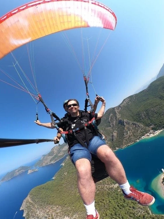 Fethiye’ye ilk kez gelen 47 yaşındaki görme engelli Paul Goodwen, Babadağ’dan yamaç paraşütüyle uçtu. Yaklaşık 45 dakika süren uçuş sonrası Belcekız Plajı’na iniş yapan Goodwen, "Görmememe rağmen bu deneyimle kendimi özgür hissettim" dedi. Fethiye’nin yamaç paraşütü merkezi haline gelen Babadağ, her yıl dünyanın dört bir yanından gelen binlerce yerli ve yabancı misafiri ağırlıyor. Fethiye’ye ilk kez gelen 47 yaşındaki görme engelli Paul Goodwen, Ölüdeniz Babadağ’ın bin 700 metrelik pistinden deneyimli pilot Osman Nihat Cengiz ile birlikte yamaç paraşütüyle uçuş yaptı. Yaklaşık 45 dakika süren uçuşun ardından Belcekız Plajı’na güvenli bir şekilde iniş yapan Goodwen, gökyüzünde olmanın kendisini çok mutlu ettiğini söyledi. Uçuş sonrası duygularını paylaşan Goodwen, "Görmememe rağmen bu deneyimle kendimi özgür hissettim. İlk kez geldiğim Fethiye’ye hayran kaldım" diye konuştu. Goodwen’in kızları da Babadağ’dan tandem uçuş yaparak bu unutulmaz deneyimi paylaştı.