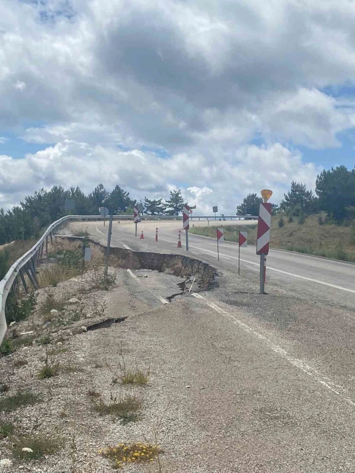 Bolu’da geçtiğimiz yıl yağmur yağışının en çok etkili olduğu noktalardan biri olan Mudurnu-Göynük kara yolunda çökme meydana geldi. Bozcaarmut Köyü yolu ayrımının yakınlarında yol çöktü. Çöken yolun bir kısmında kayma oldu. Karayolları ekipleri, çökme sonucunda kayan yolda işaretlemeler yaparak dubalama yöntemiyle güvenlik önlemleri aldı. Aradan geçen bir yılın ardından çöken yolun hala aynı kalması tepkiye neden oldu. Yapımı tamamlanamayan yol, yapılmayı bekliyor.