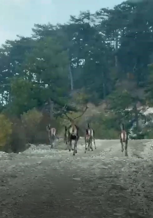 Bolu’nun Göynük ilçesinde orman yolunda gezen geyik sürüsü, bir vatandaşın cep telefonu kamerasıyla görüntülendi.