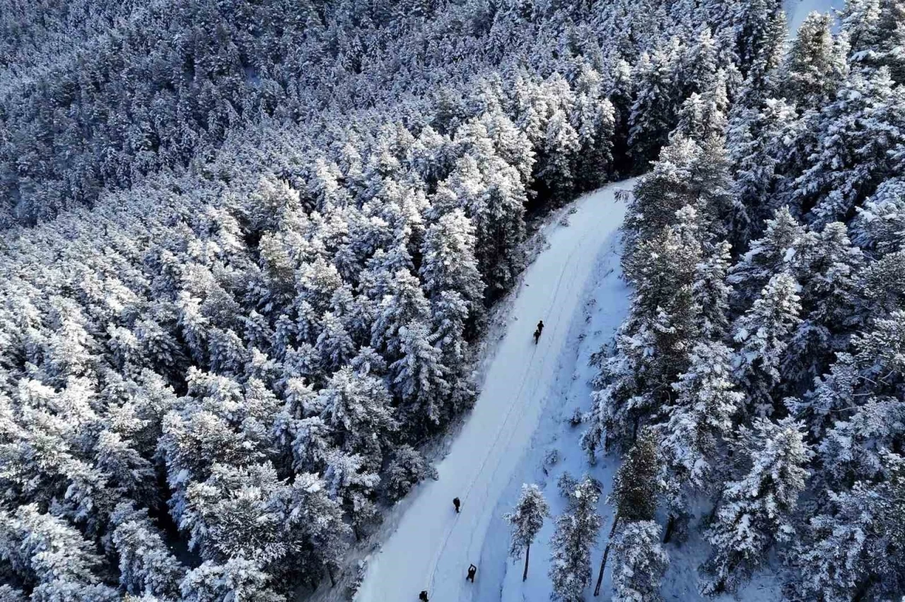 Karla kaplı çam ve göknar ormanları arasında unutulmaz bir gün geçiren sporcular yürüyüş boyunca yer yer 40 santimetreye ulaşan taze kar kütlesinin üzerinde yürüdü.